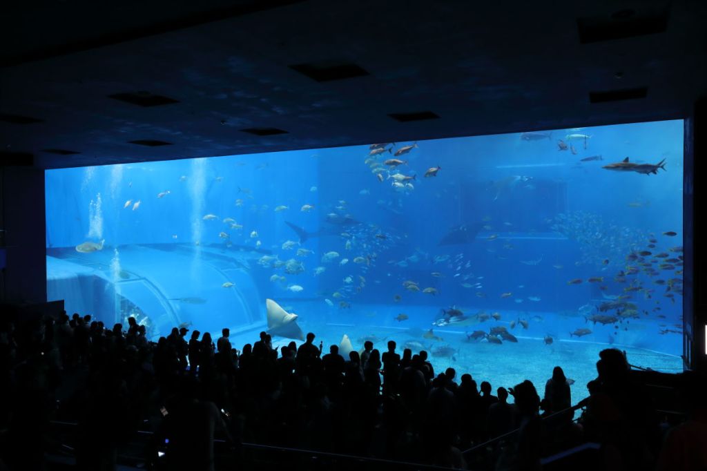 After getting full, we arrived at Churaumi Aquarium. Although it was a weekday, it was full of tourists.