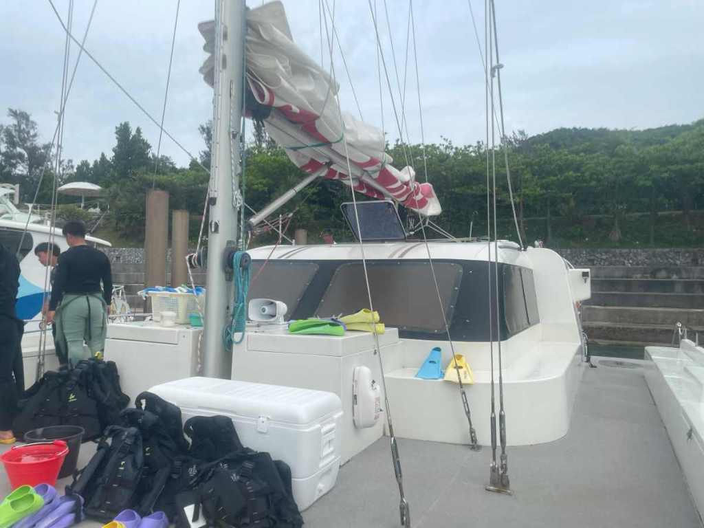 As anticipated, wearing a wetsuit is essential during this season. Thus, we donned wetsuits for the first time and embarked on a journey aboard a twin-hulled yacht.