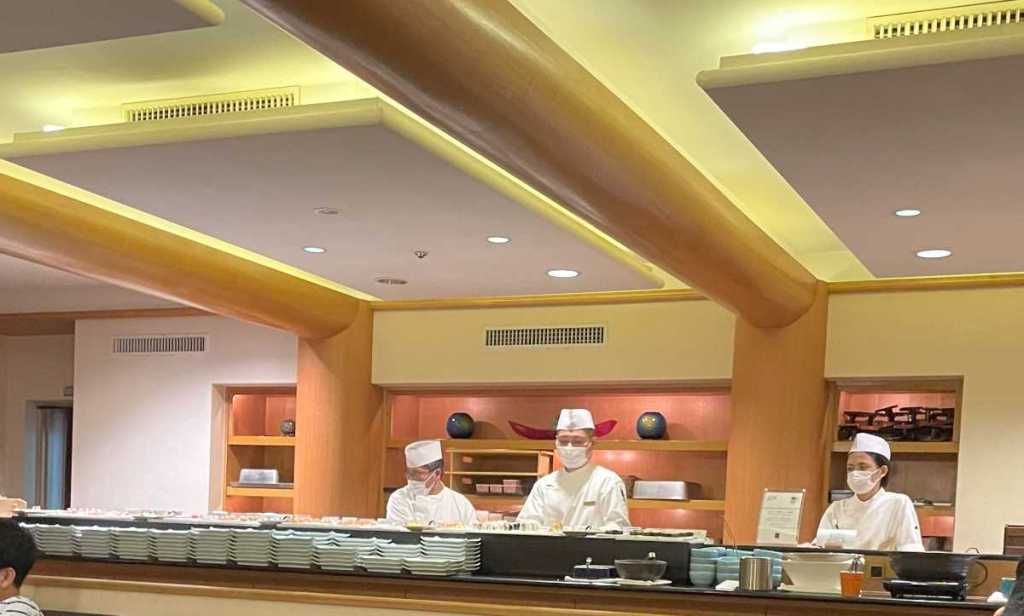 The “Four Seasons” offers a Teppanyaki breakfast with three teppanyaki stations serving freshly cooked dishes like thick-cut ham steaks, pancakes, and omelets. Additionally, a broad assortment of other items, including sparkling wine, is available to give you a resort-like experience.