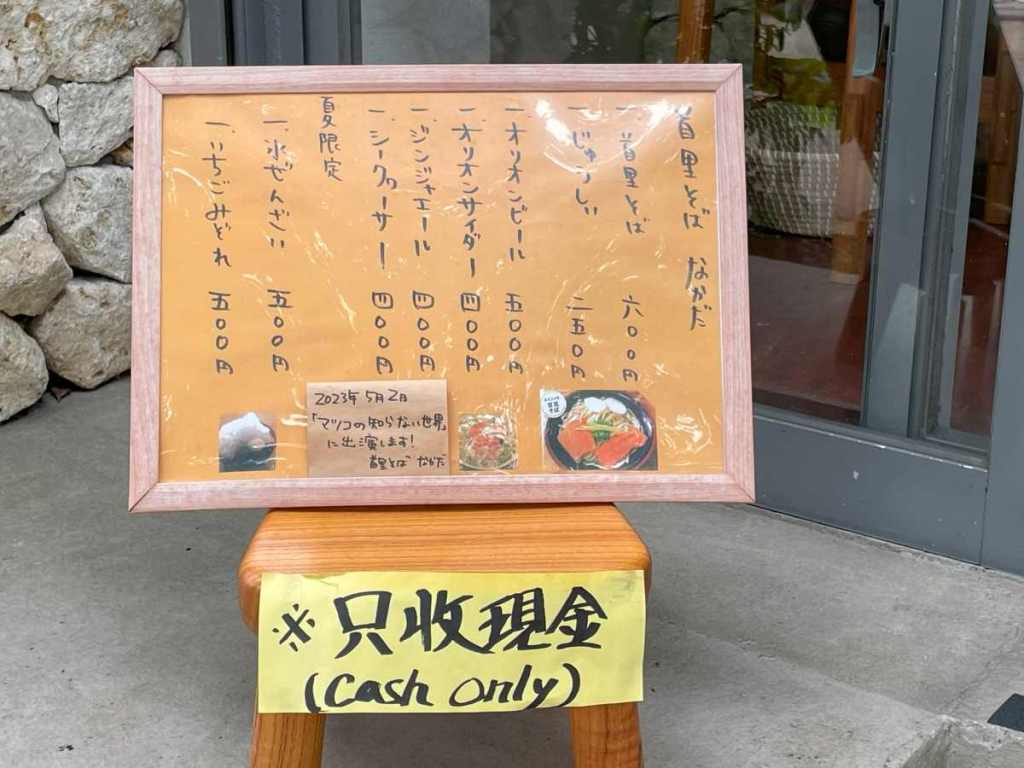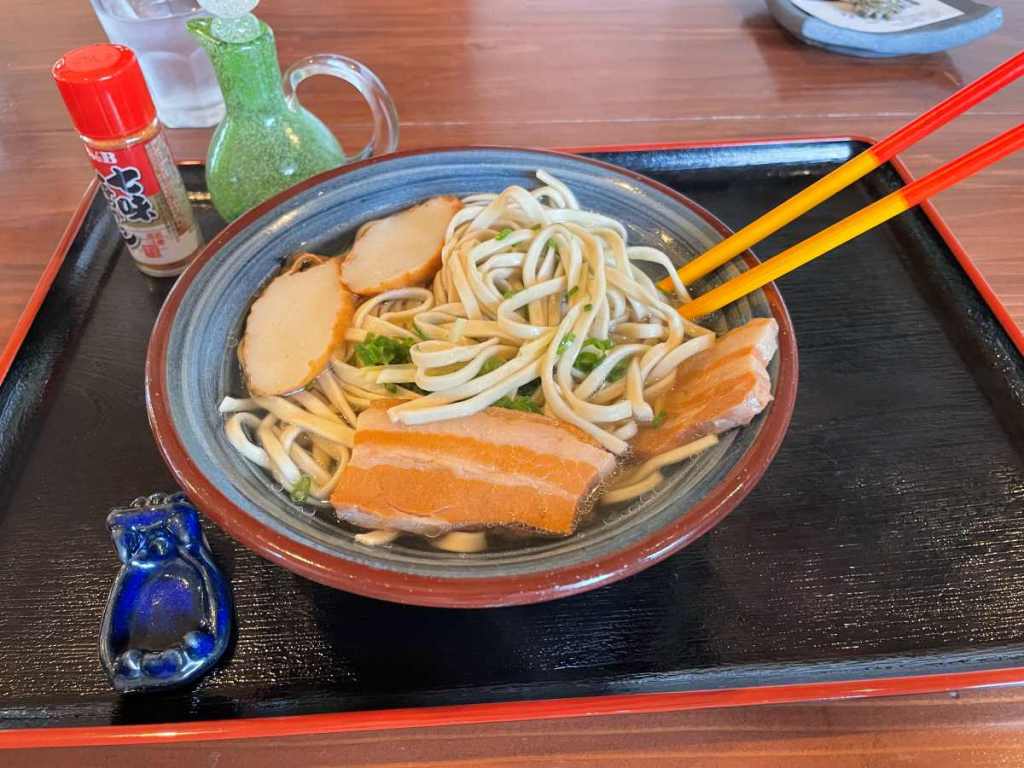 After a stroll in the park and as lunchtime approached, we made our way to Shuri Soba Nakata, the sister establishment of Shuri Soba. The menu was straightforward. Conscious of my appetite, I opted for just the Shuri soba. This variety stands out from other Okinawa soba noodles due to its distinctive flat noodles.