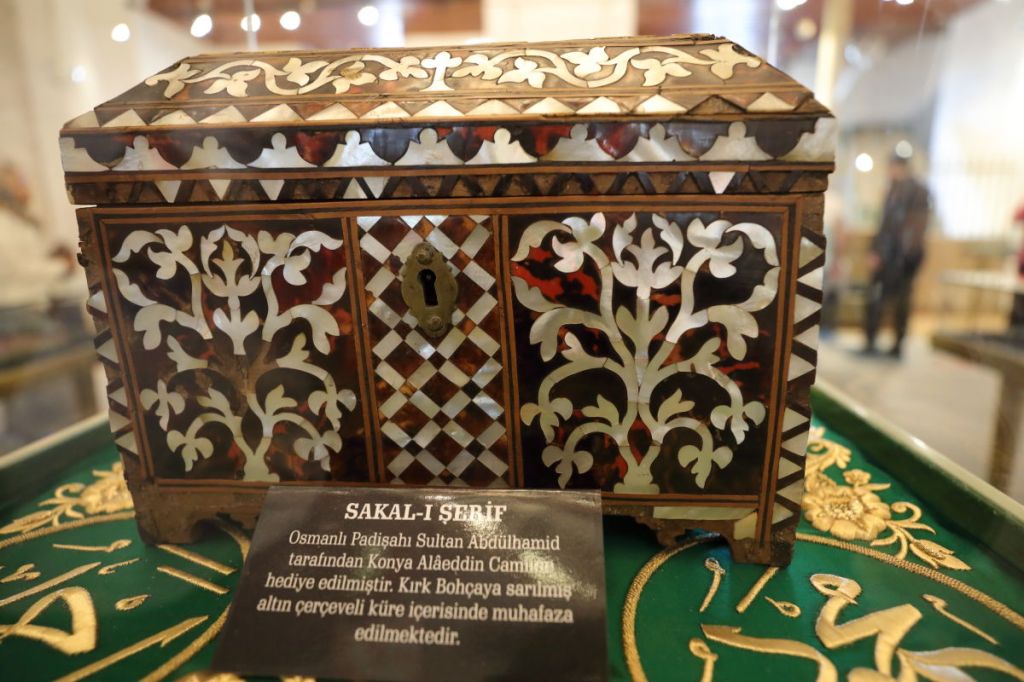 The image is believed to show a box that holds the Prophet Muhammad’s beard. Covered by glass, it has tiny holes on each side, allowing worshippers to catch the scent and feel wonder.