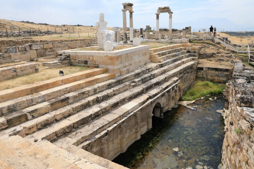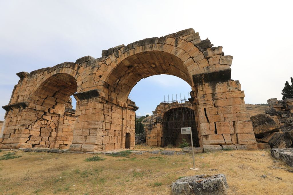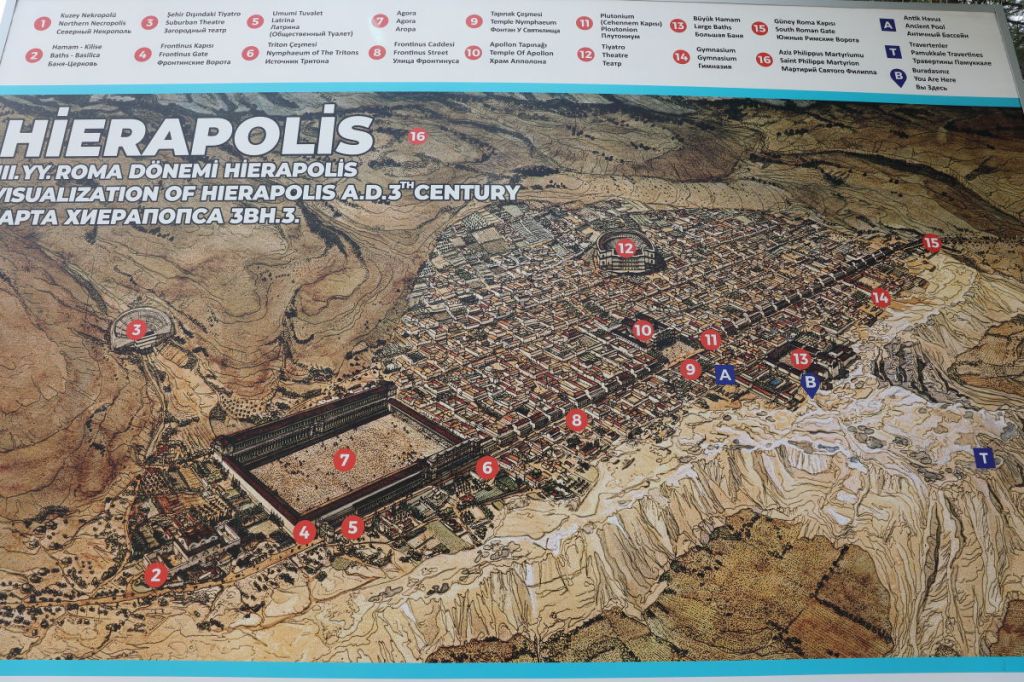 The image below depicts a map of Hierapolis. The public baths can be found at location ②, and the town’s gate is situated at the entrance marked ⑦.