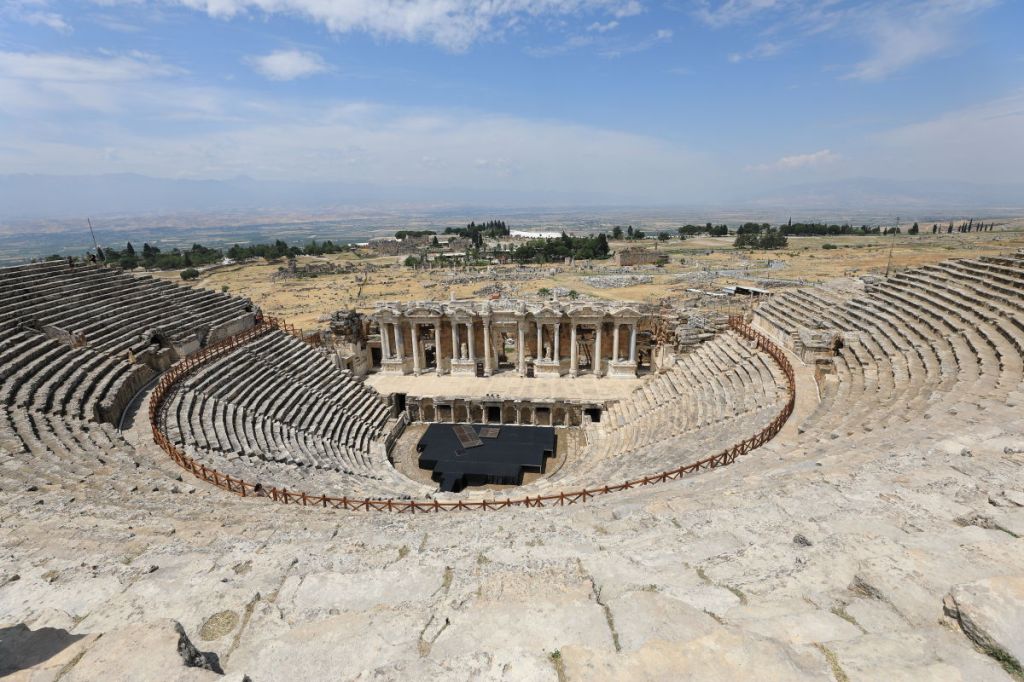 The amphitheater remains in excellent condition, and beyond it lies a temple dedicated to Apollo, the sun god of Greek mythology.
