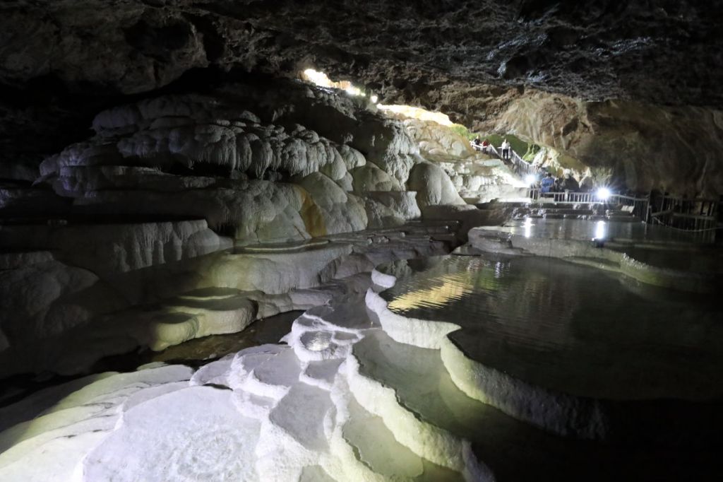 After lunch, we visited Kaklık Cave. The landscape bears resemblance to the travertines of Pamukkale, though it boasts fewer stalactites.