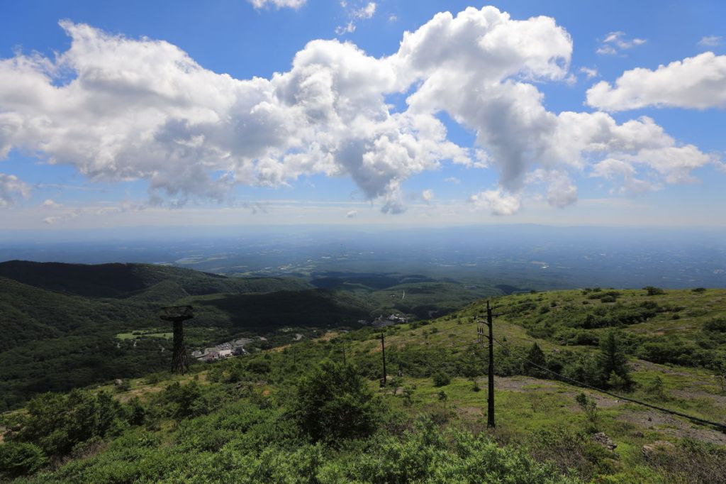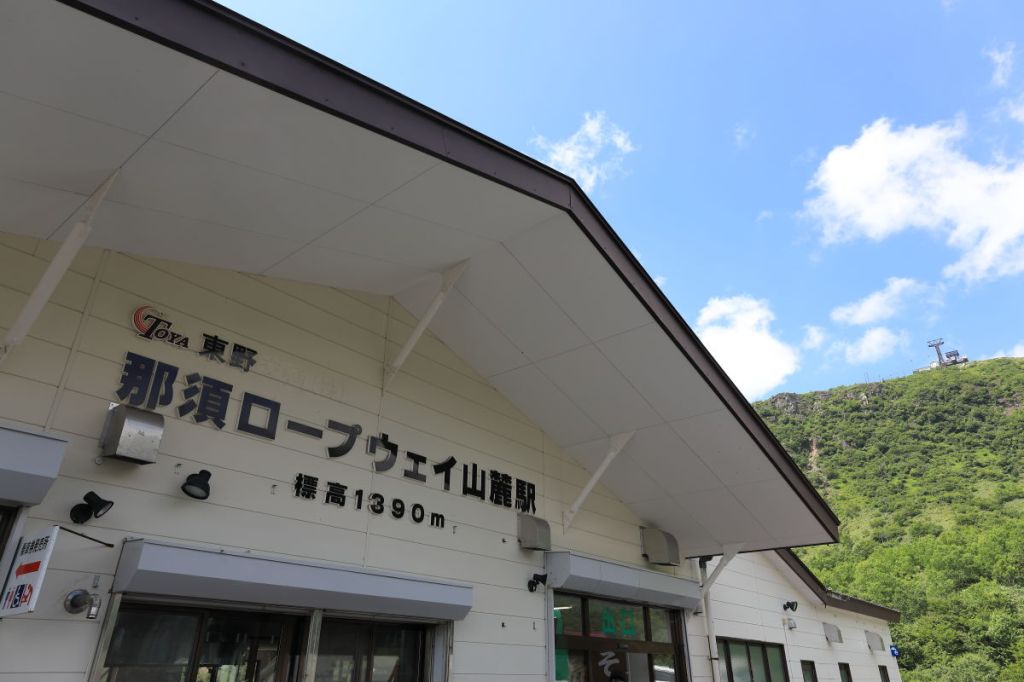 朝食後9:00過ぎにチェックアウトしてから那須ロープウエイの山麓駅に、平日の朝早いのにかかわらず駐車場はほぼ満車となっていました。標高1,390mの山麓駅から4分程度で山頂駅に着きました。