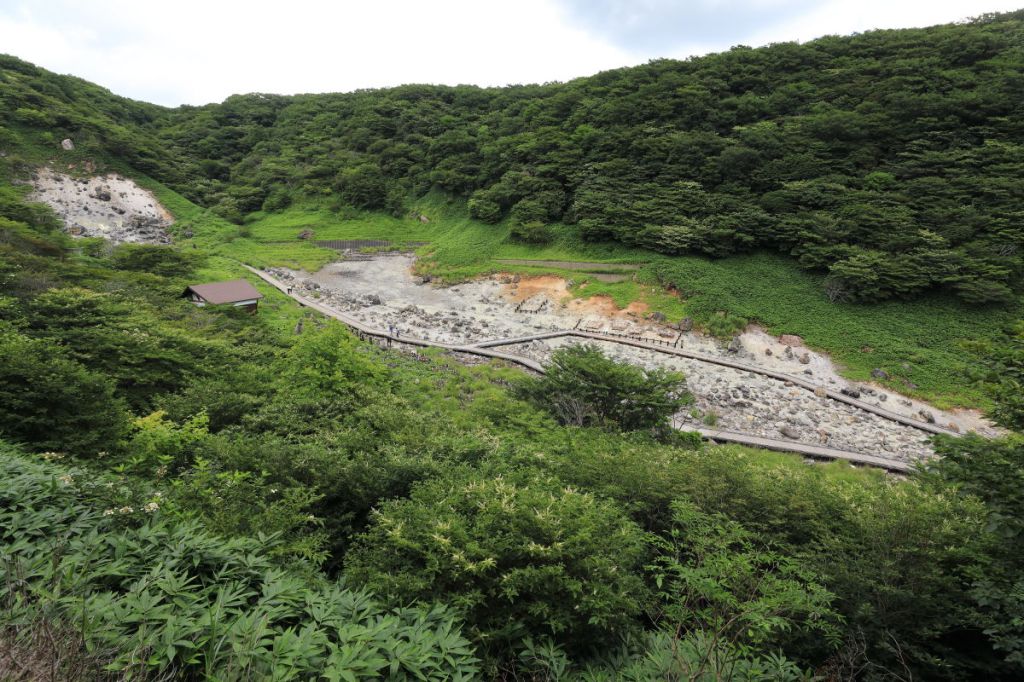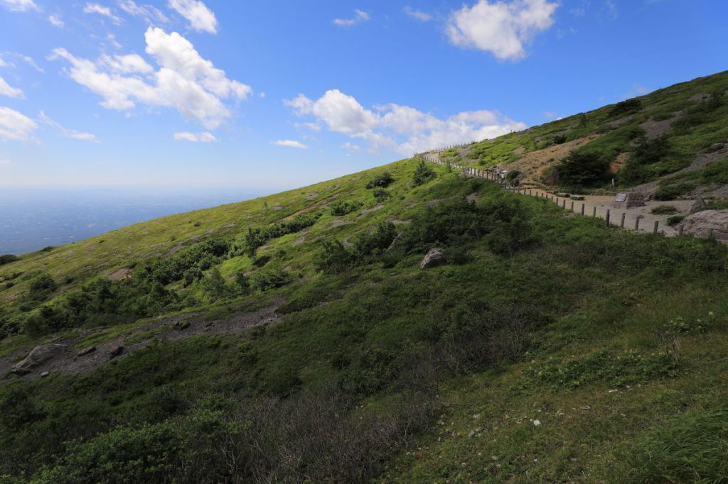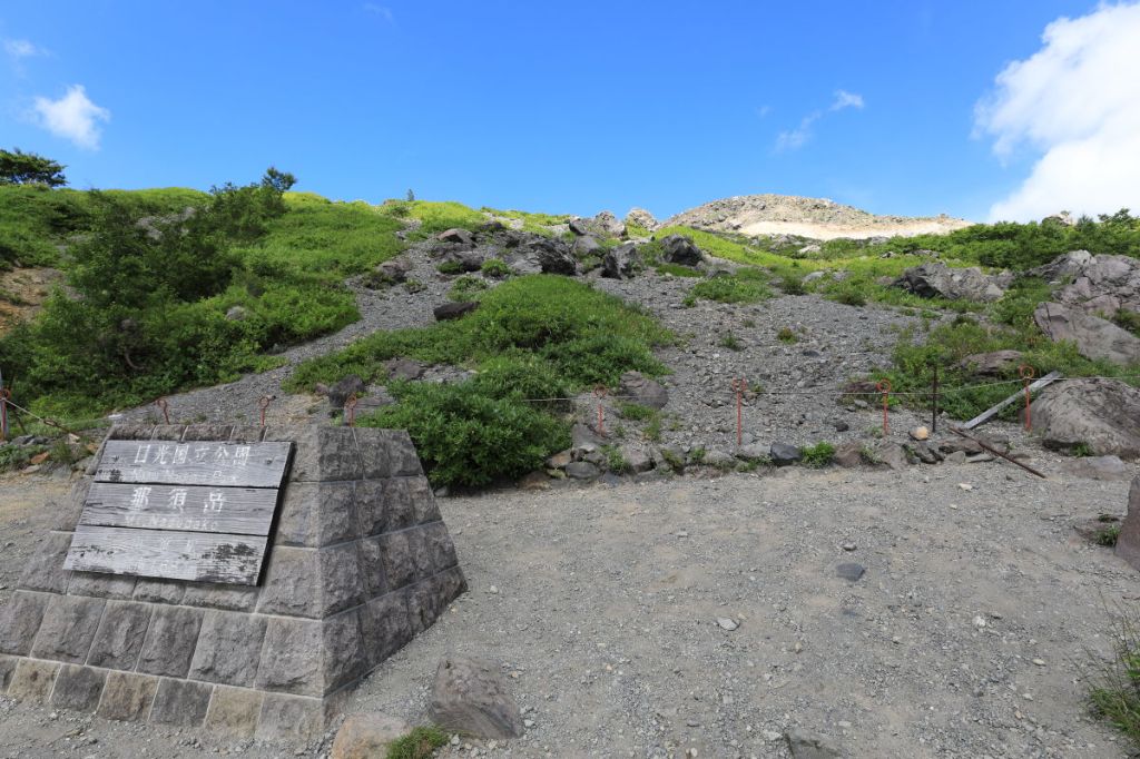 標高1,674mの山頂駅前からの茶臼岳山頂が見られます。茶臼岳は今も噴煙を上げる活火山で、那須岳という名称は三本槍岳(1,917m)、朝日岳(1,810m)とこの茶臼岳の総称ですが、この茶臼岳が主峰となっています。