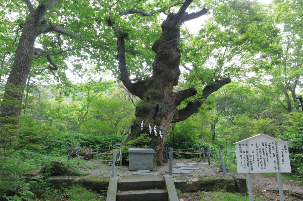 この温泉神社は630年に建立され、温泉がつく神社は全国でも10社程度ありますが、最も歴史のある格の高い神社の一つです。源平合戦の前に那須余一が参拝し、屋島の戦いで見事に扇の的を射てから那須一族の信仰を厚く得たようです。ここには共に樹齢800年の見事な五葉松と、御神木のミズナラの木があります。