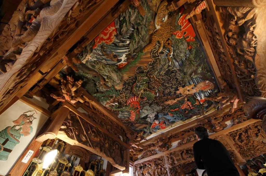 昼食後、少し離れた魚沼市にある赤城山西福寺に向かいました。この寺は1534年に開山されましたが、江戸時代幕末の1857年に建てられた開山堂というお堂があり、堂内は雲蝶の作品で埋め尽くされています。