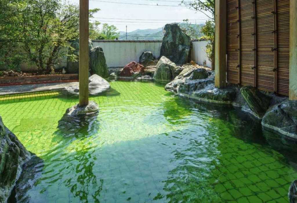 硫黄泉というと硫化水素型の酸性で乳白色のものが多いですが、ここは弱アルカリ性の硫黄を含むナトリウム・塩化物・硫酸塩泉のためエメラルドグリーンとなっています。自家源泉である白玉の湯の硫黄の含有量が1㎏中164.8㎎と今まで行った高湯温泉、万座温泉よりかなり高くなっていました。ちなみに月岡温泉の他の源泉は85.8㎎なので自家源泉ならではの高さなのでしょう。