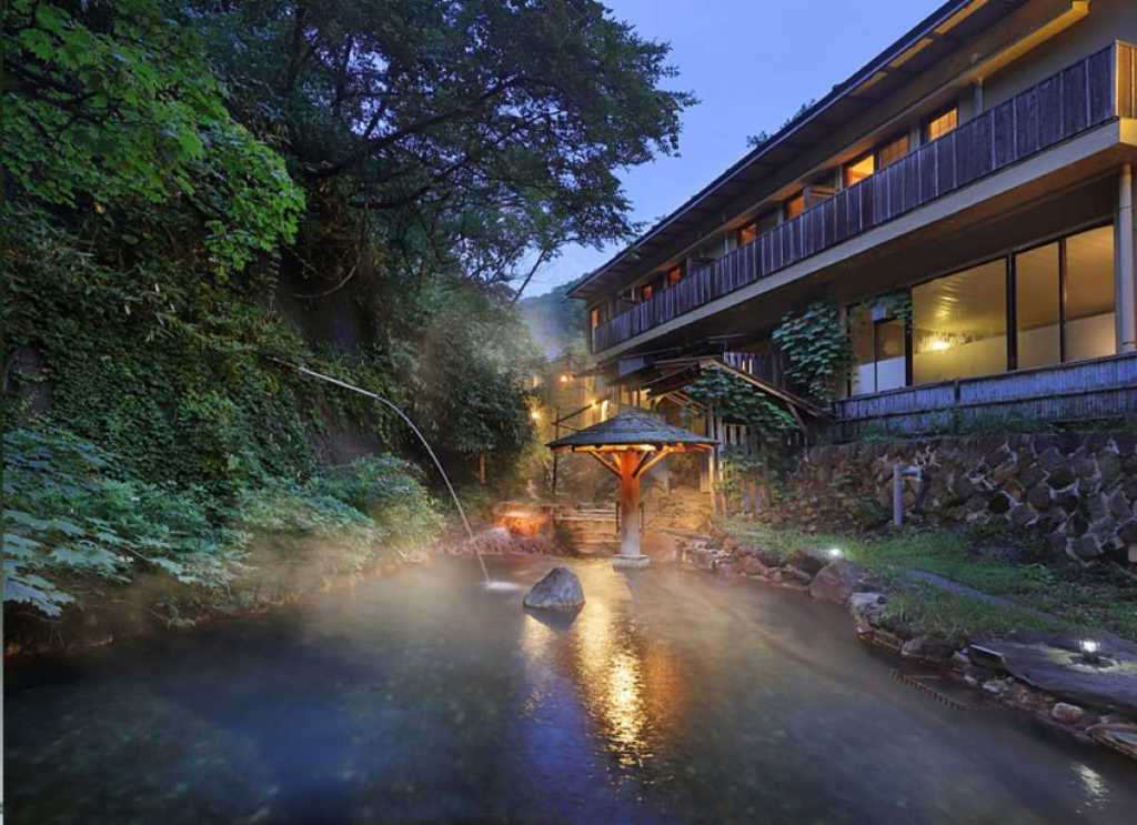 本日の宿は白玉の湯泉慶です。プロが選ぶ日本のホテル・旅館100選で2024年総合4位という評価の高い旅館ですが、平日でもありJ1泊2食付き20,000円台のプランがありそれを予約しました。15:00にチェックインした後一休みして早速温泉へ。下記の写真は旅館のHPから切り取ったものですが、内湯は温泉ではなく沸かし湯で、温泉に入る前の準備のためで、温泉は露天風呂にありエメラルドグリーンの色をした硫黄泉です。