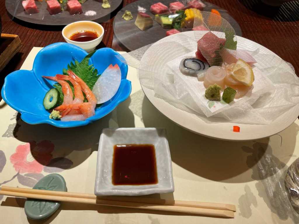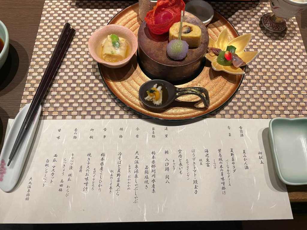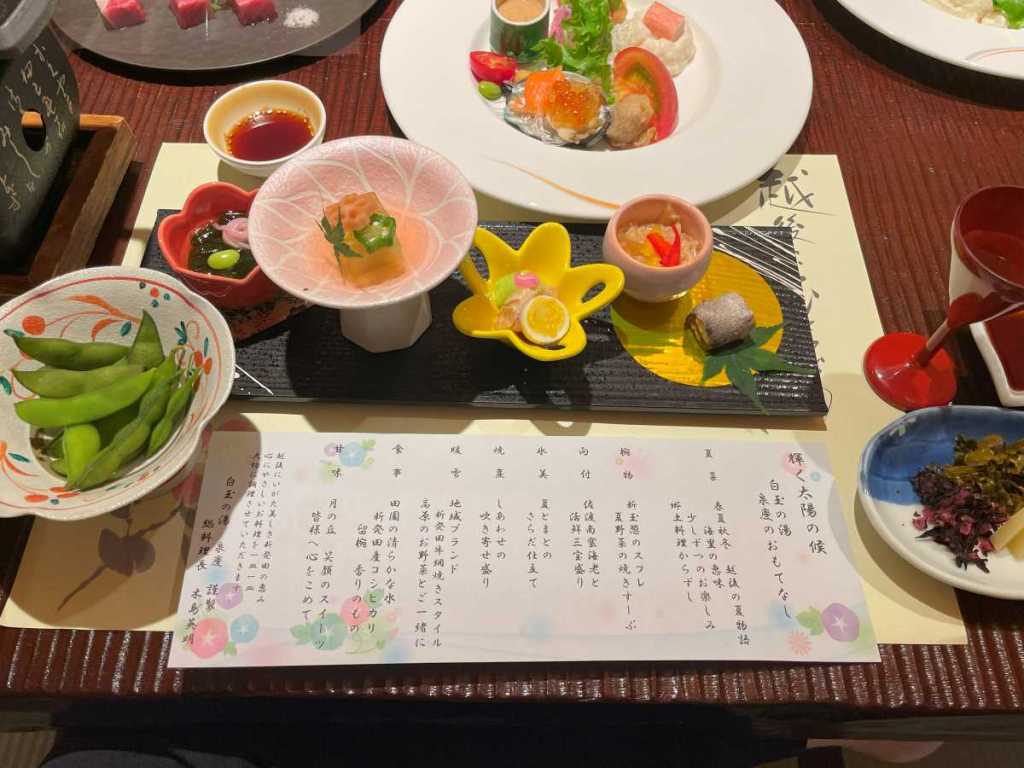 夕食は、新潟の食材を使った懐石料理です。この時期ならではの枝豆も添えられています。