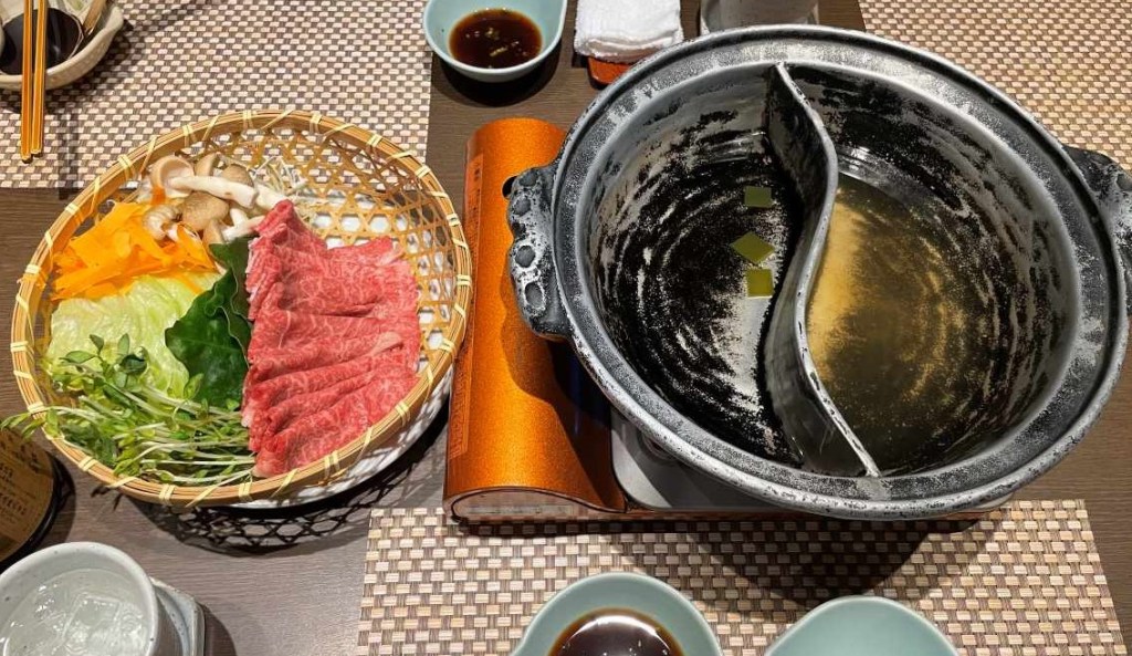 夏の時期にしゃぶしゃぶは珍しいですが、大丸温泉は標高1,300mに夏でも涼しく違和感はありませんでした。ちなみに鍋の左側は大丸温泉の源泉で、右側は昆布だしです。
