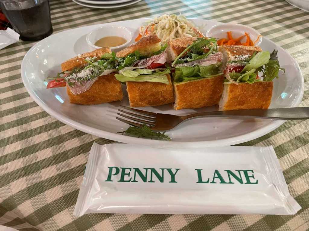 昼近くになったので以前に行ったことのあるペニーレインという美味しいパンを製造・販売しているレストランに行きました。バゲット半分を使った生ハムのサンドイッチはとても美味しかったです。