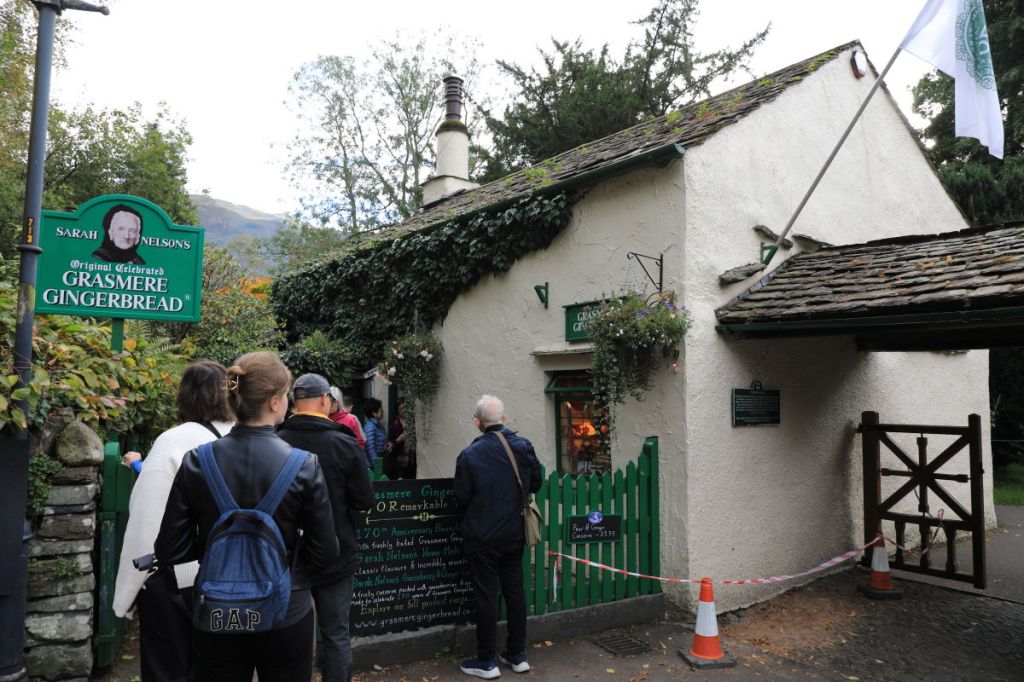 車はRydalWater(湖)を通り、湖の横にあるGrasmereの町で停車しました。ここにはGinger Breadで有名な小さなお店があります。Breadという名前ですがクッキーのようなお菓子です。狭い店内は買い物客でごった返しになっていました。
