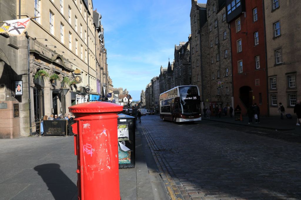 ホテルにチェックイン後、早速今日の最初の目的地ホリールード宮殿(Palace of Holyroodhouse)に向かいました。ホテルはエディンバラ城とホリールード宮殿を結ぶ旧市街のメイン道路であるロイヤルマイルに近くにあり、ホリールード宮殿やエディンバラ城へのアクセスが便利な場所にあります。ロイヤルマイル沿いは古い町並みが続きどこを切り取っても絵になります。