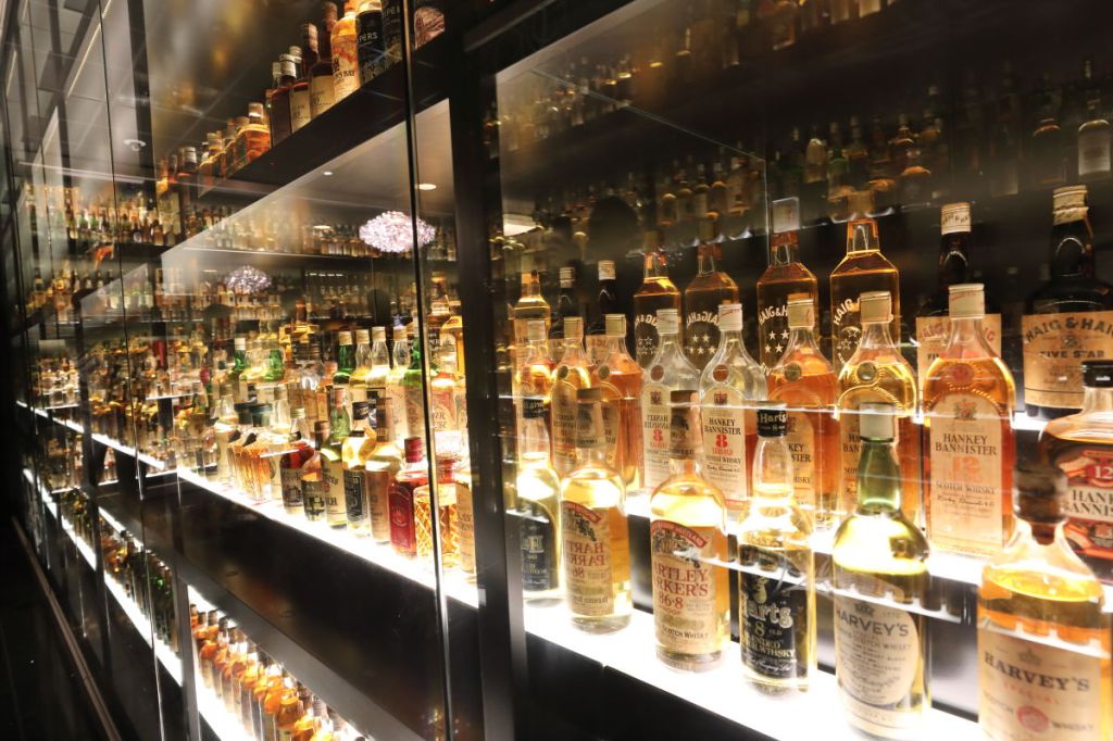 試飲した部屋の周りにはたくさんのウイスキーのボトルが飾られていました。