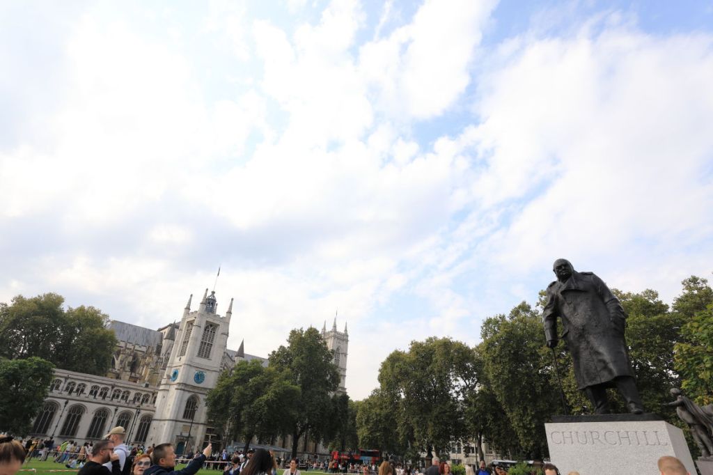 After that, I walked to Big Ben. There was a magnificent bronze statue of Churchill in the square in front of it, and it was crowded with people.