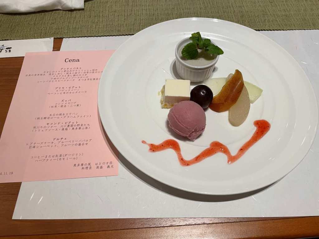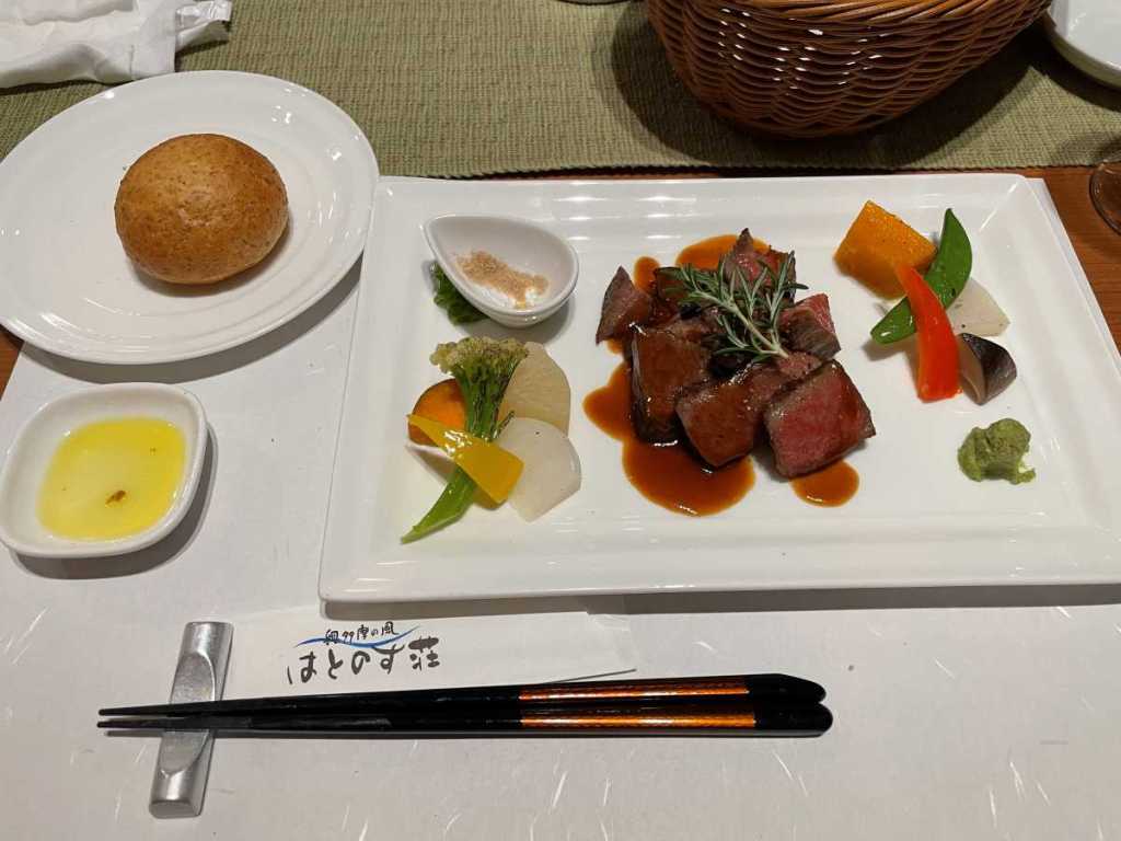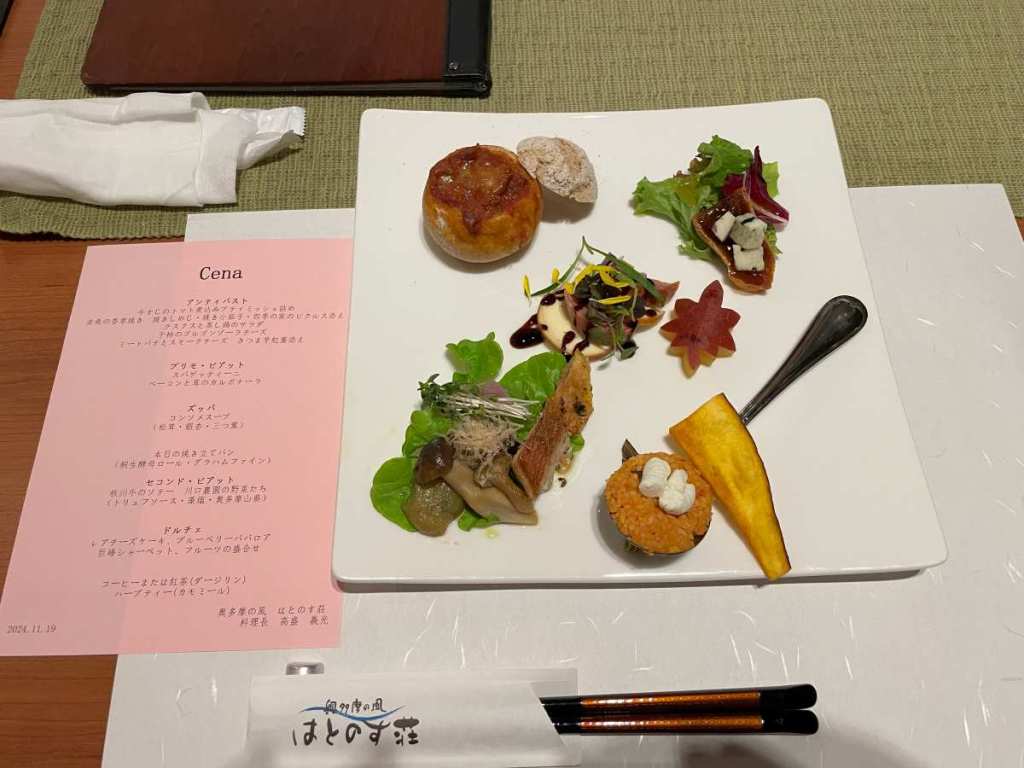 しばらく散策したあとに、鳩ノ巣小橋のそばにあるカフェぽっぽでコーヒーを飲み暫し休憩。そこから坂道を登って本日の宿であるはとのす荘へ。数年前から気になっていた宿で、東京都にある温泉宿で夕食はイタリアンのフルコースということで、JTBの顧客評価もトップクラスとなっています。