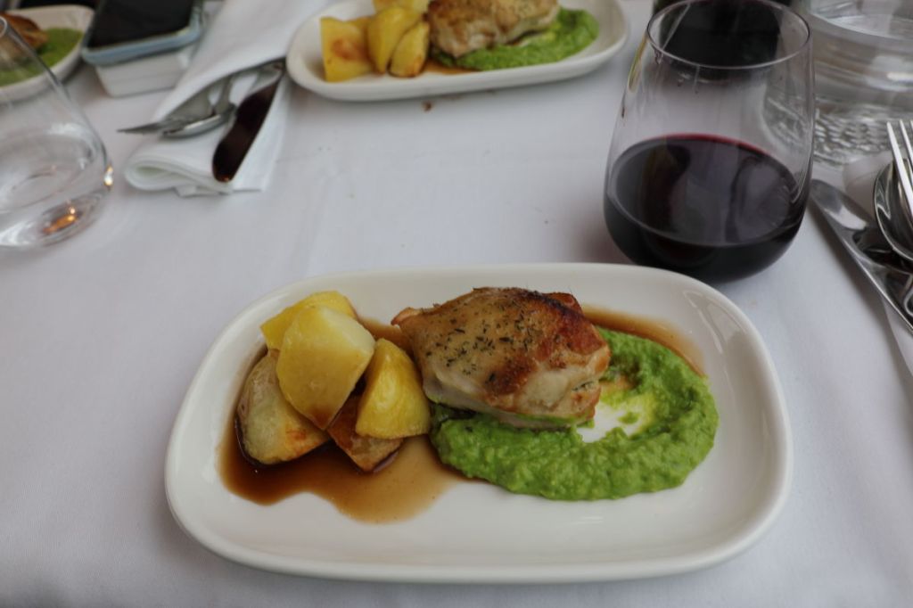 As the train approached Wellington, dinner comprised roast chicken breast accompanied by rosemary potatoes and Gisborne pea mash.