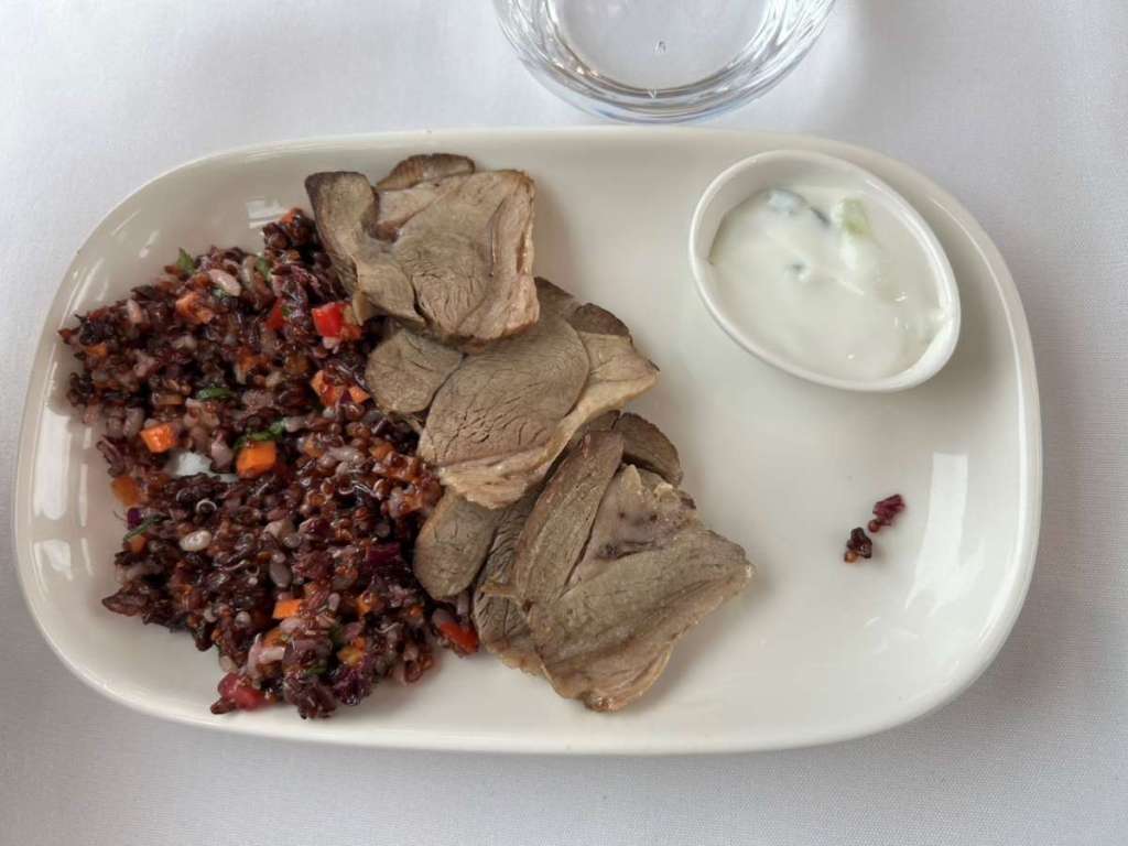 Upon returning to my, I served my lunch: a New Zealand Keanu mixed vegetable salad accompanied by slices of rosemary garlic-flavored lamb. It was a very healthy meal.