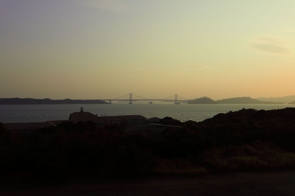 残念ながら島の内部への立ち入りは禁止されています。遠くに明石大橋が見えています。