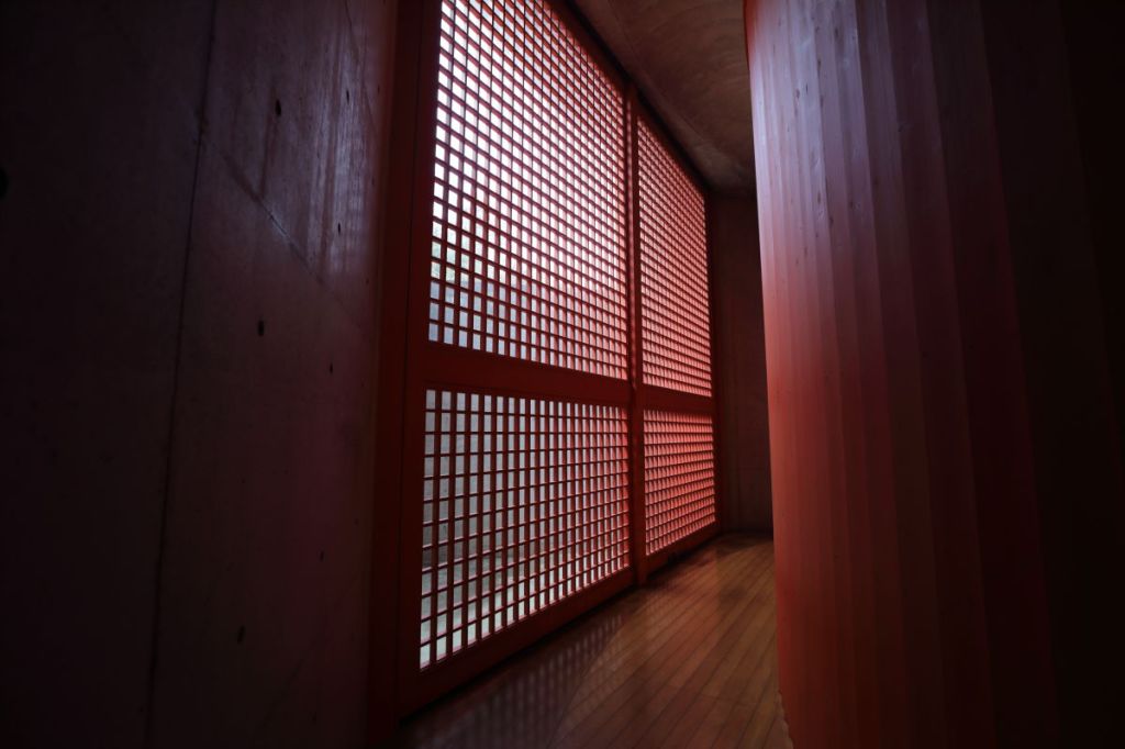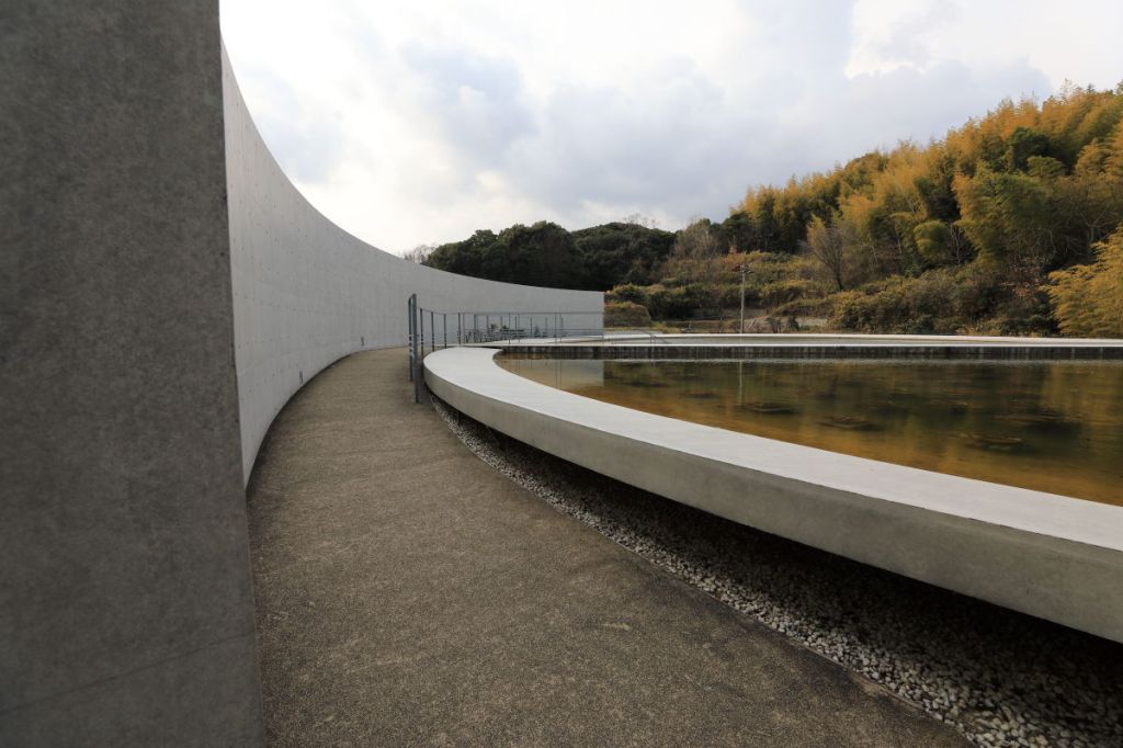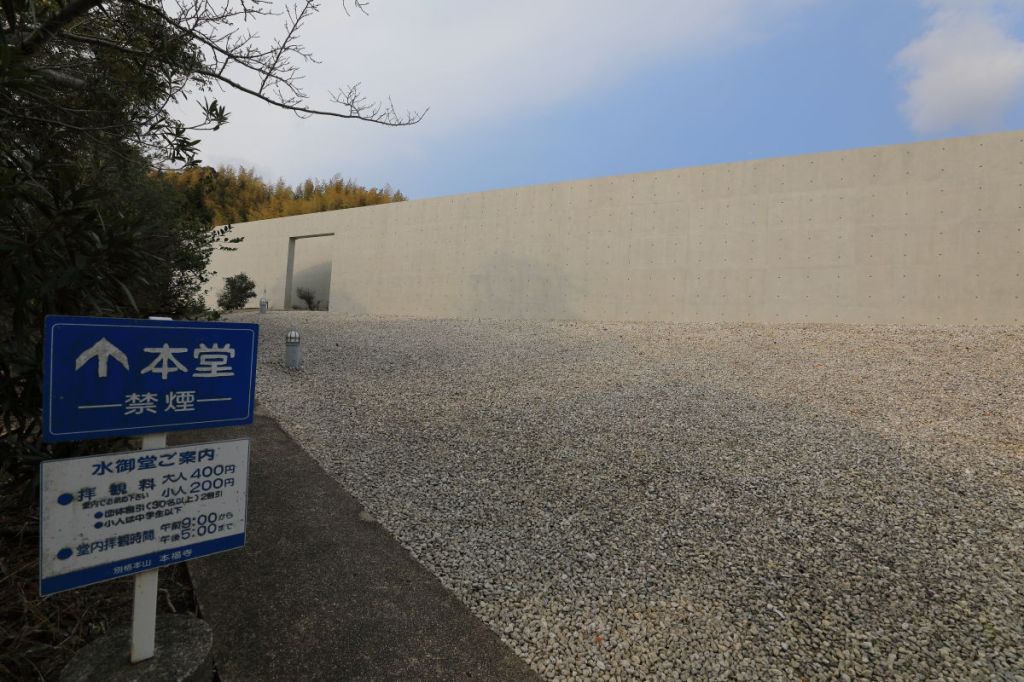 食後は今回の旅行の目的の一つである、安藤忠雄が設計した現代風の本堂を持つ本福寺水御堂に向かいました。この寺は平安時代に創建されたと伝わる真言宗御室派の寺院で入口は普通のお寺に見えますが、中に入ると驚く光景が広がっていました。