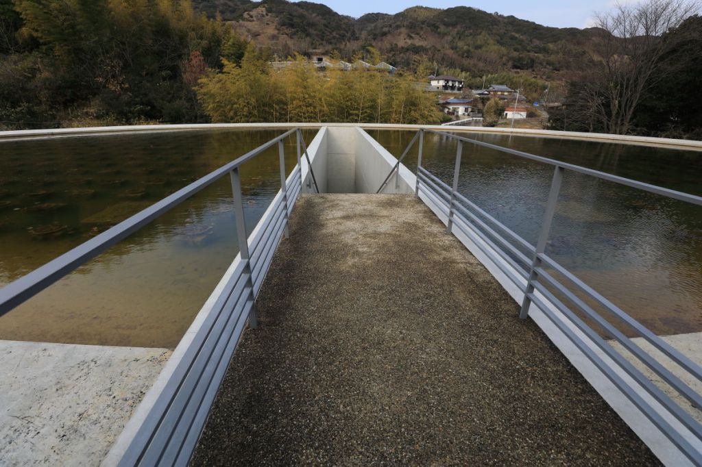 円形の池の中央に本堂につながる階段がありました。池にはハス池となっていますが残念ながら冬なのでハスの葉も水の中にありました。6月から7月にかけては花が咲き綺麗になるそうです。