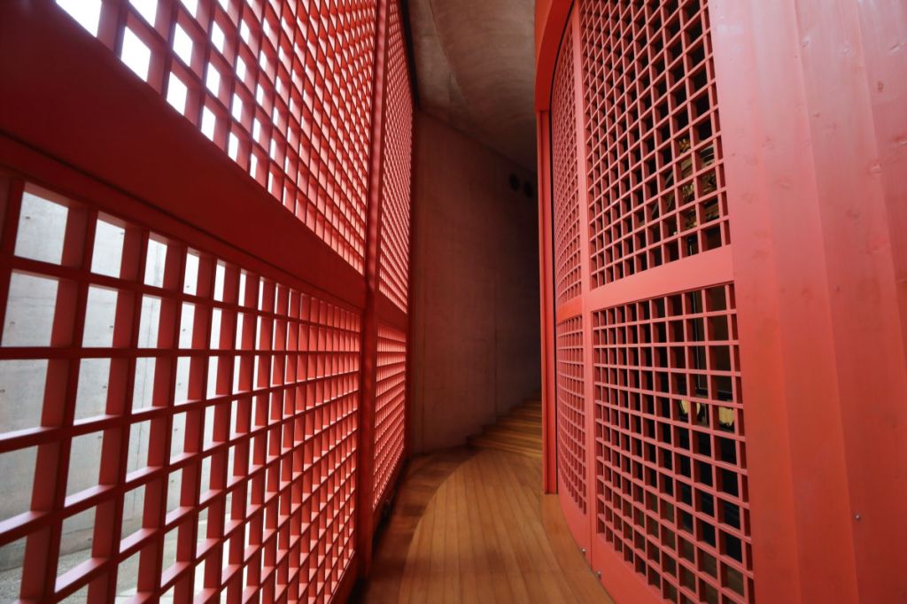 コンクリートの打ちっぱなしの入り口を入ると円形の回廊があります。