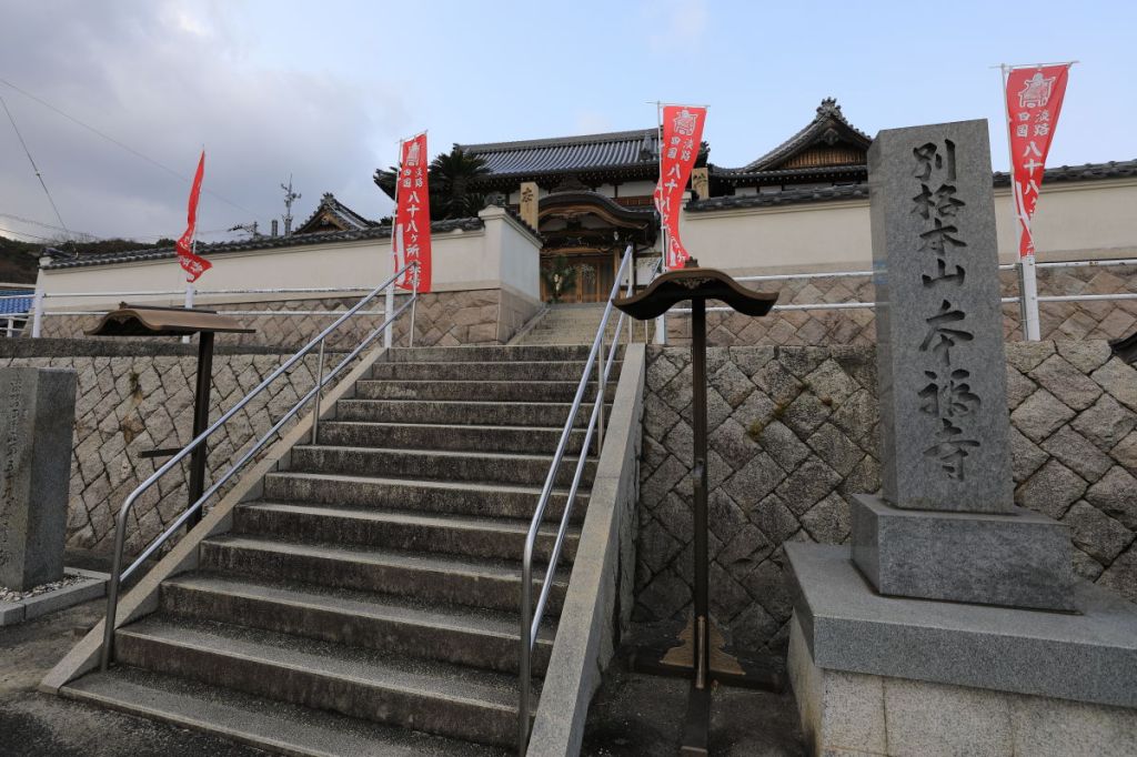 本堂内部は撮影禁止なので写真は朱色の回廊だけですが独特の雰囲気があります。ちなみに本堂には淡路市重要文化財の薬師如来像が鎮座しています。