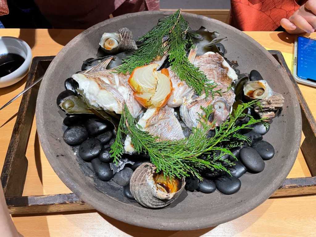 残りの半身が一度下げられ、その鯛とサザエの宝楽焼が出てきました。