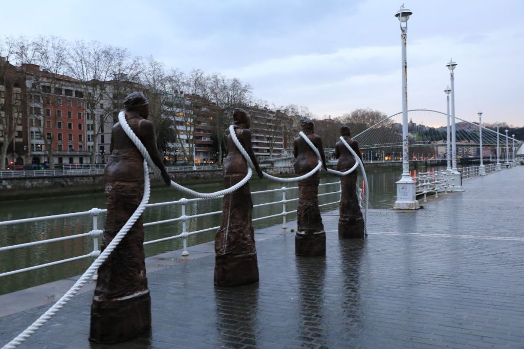ゲタリアのレストランが13:00から開店のためホテル出発が11:15と朝余裕があったので、ホテルのそばの川沿いを散策しました。スビスリ橋のほうに向かうと4体の女性の彫像がありました。昔この川の船を女性たちがロープで牽引していた姿を現しているようです。