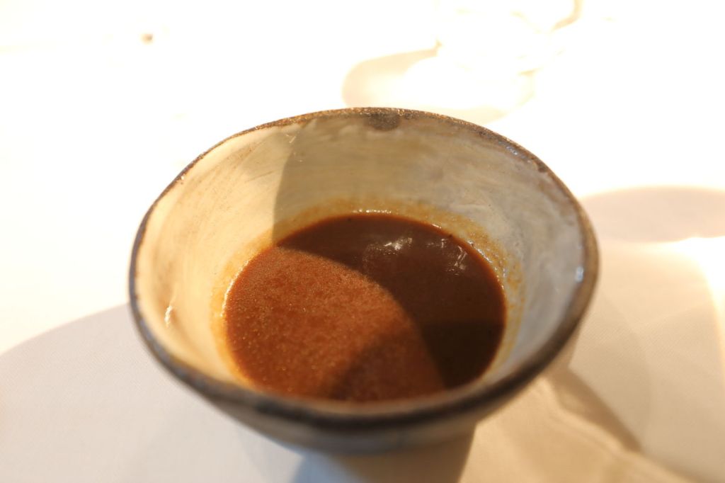 席を予約しただけなのでアラカルトで料理を頼みました。一品目は名物のフィッシュスープのハーフサイズを頼みました。創業以来の味を守っているようで、濃厚な魚のうまみが出ていました。以前マルセーユでブイヤベースを食べた時のソースと同様な色と味でした。