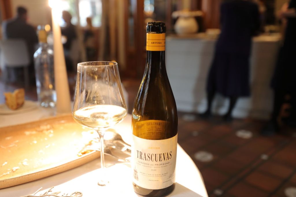 ワインはTrascuevas 2022 Artukeという近くのリオハ地方の白ワインにしました。とてもバランスが取れたワインですっきりとした味わいで美味しかったです。