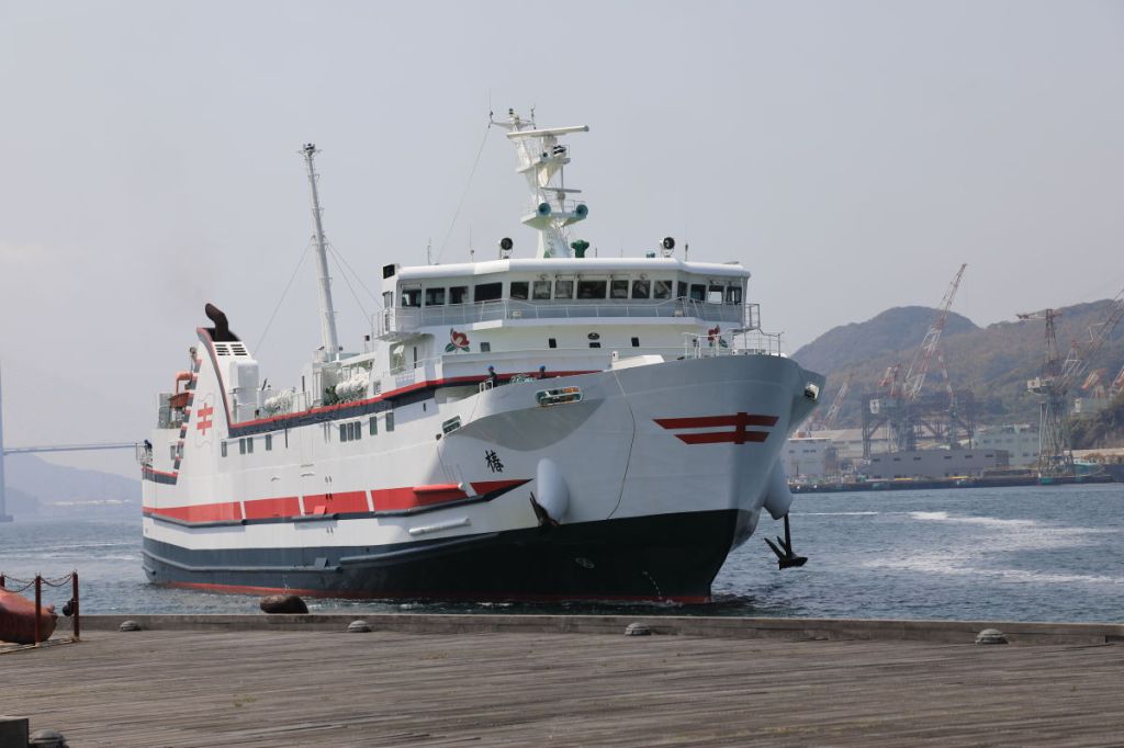 I arrived at Nagasaki Airport at 9:15 on JAL flight 605 departing from Haneda at 7:25, got off at a bus stop called Ohato near Nagasaki Port by express bus. I had lunch at a restaurant in the ferry terminal, and then headed to Narao Port on Nakadori Island, where Shinkamigoto Town is located, on the Kyushu Shosen ferry departing at 12:25. The photo shows the ferry Tsubaki that I was on. The Goto Islands are famous for the natural habitat of camellias, and camellia oil is one of their specialties.