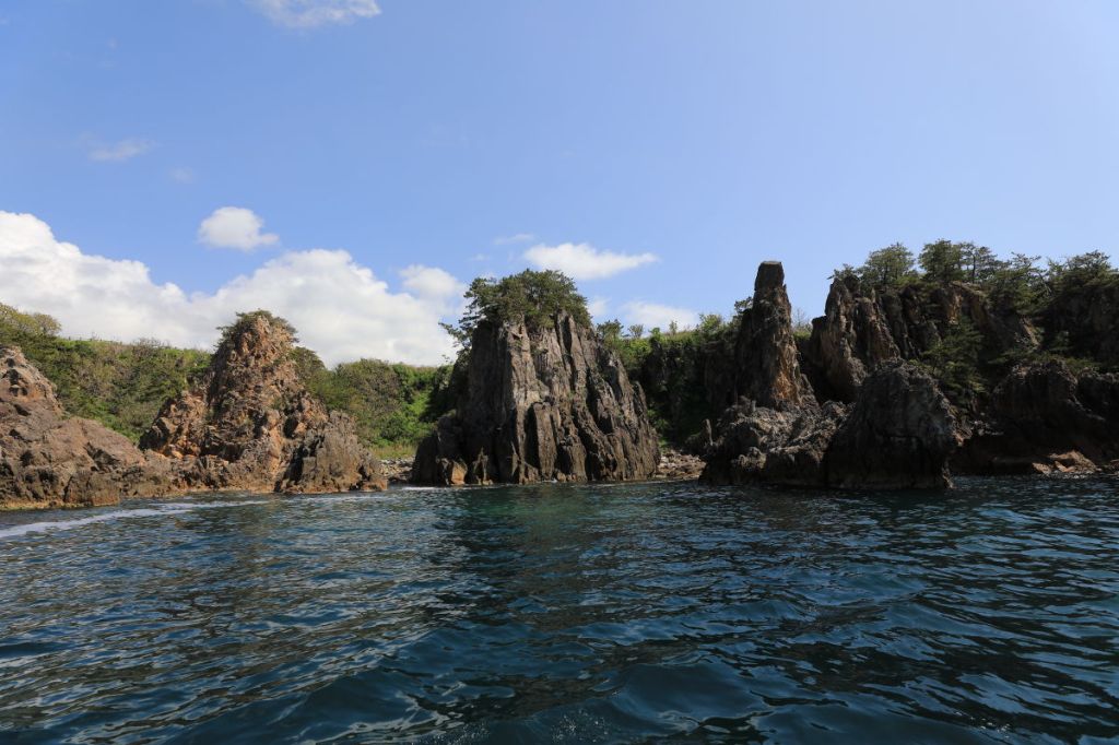 I continued to move west along the coast of the island and went to Senkaku Bay Ageshima Amusement Park. Senkaku Bay is a small bay that stretches for about 3 km, but it is a scenic spot with many oddly shaped rocks. I purchased an admission ticket with a boarding pass and boarded the underwater observation boat.