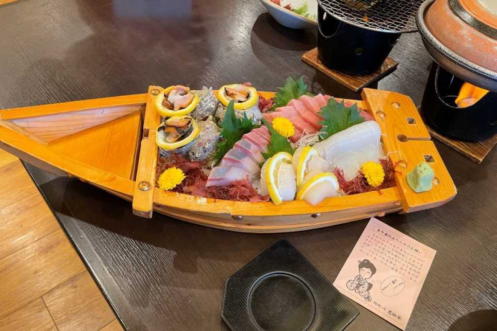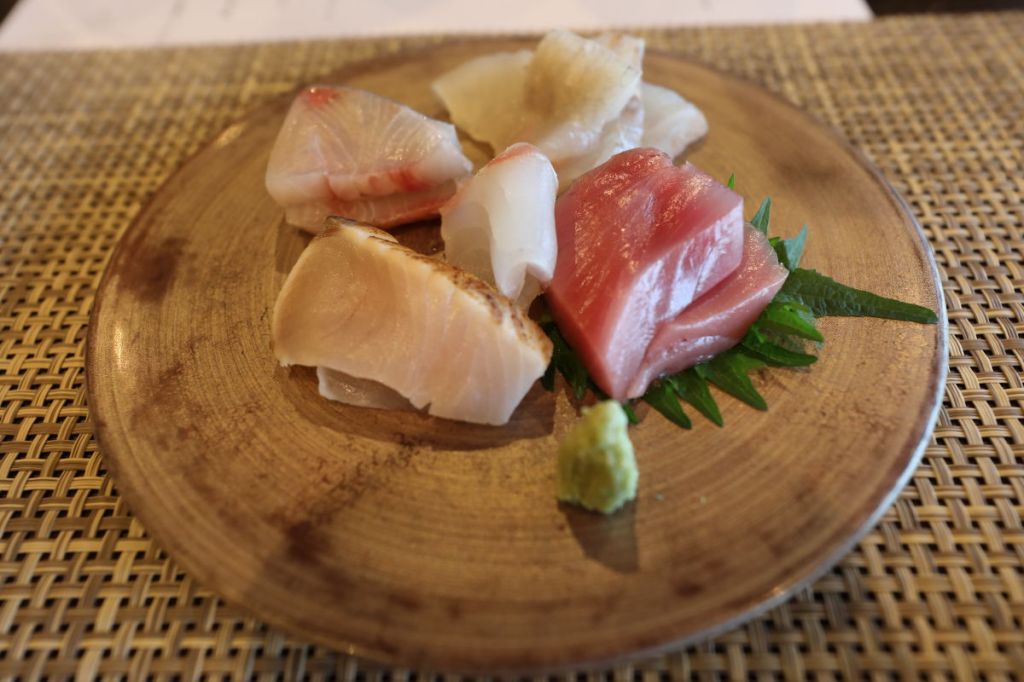 The sashimi consisted of skipjack tuna, Spanish mackerel, red sea bream, flounder, and yellowtail amberjack.