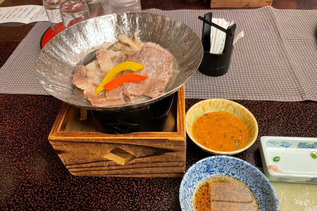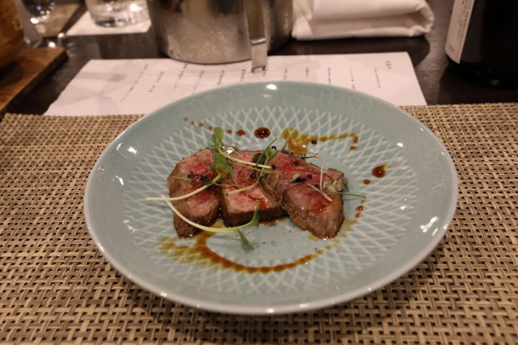 Roast beef made from Sado beef, a rare local beef that was born and raised in Sado