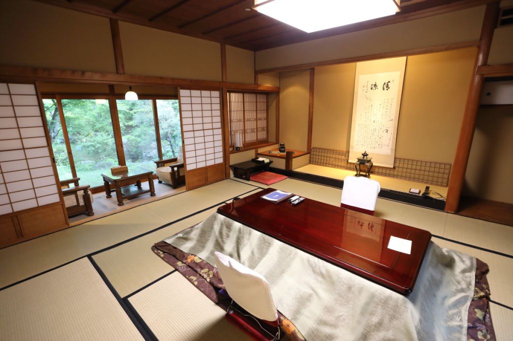 Togura Kamiyamada Onsen has a history of over 100 years, having been opened by the founder of Sasaya Hotel, who discovered a hot spring gushing out from the Chikuma Riverbed around 1870. In one corner of the hotel, there is a sukiya-style building called “Honenmushi”, which was designed as a villa in 1932 and is designated as a national registered tangible cultural property. There was a guided tour, so I joined it. There are currently eight rooms, which are preserved while being used, so the room that was not in use that day was introduced.