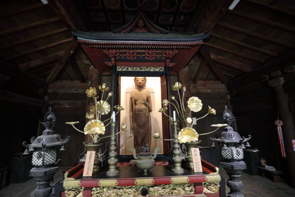 A woman at the temple office unlocked the door to the main hall for me, so I was able to see the principal image inside.