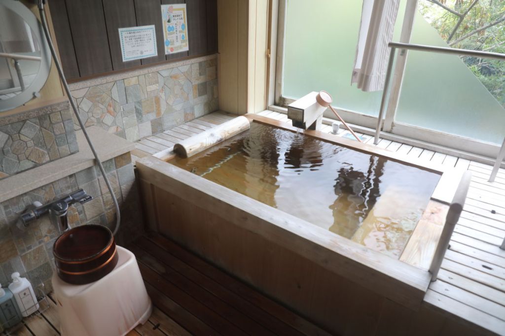 1963年に創業者の枕元に信仰していた観音様が現れ、そのお告げを受けて温泉掘削を始めたのがきっかけのようです。PH9.5の強アルカリ単純泉で湯量も大変多く。部屋の檜の内風呂も源泉掛け流しで終日入れます。飲泉も可能な温泉です。