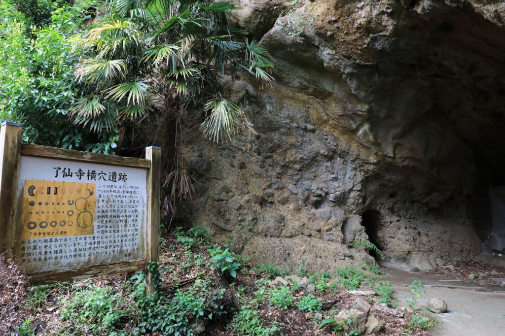本堂の左奥には今から1300年から1400年前の古墳時代の横穴遺跡があります。有力者の墓として使われ埋葬品も出土したとのことです。