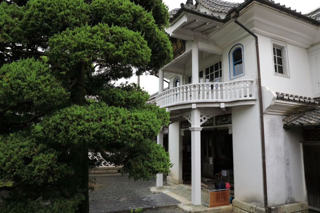 最終日の今日は、まずは松崎町にある国指定重要文化財の岩科学校に向かいました。ナマコ壁を活かした社寺風の建築とバルコニーのある洋風建築を取り入れた伊豆で最も古い学校で1880年に完成しました。長野の旧開智学校に次ぐ古さです。