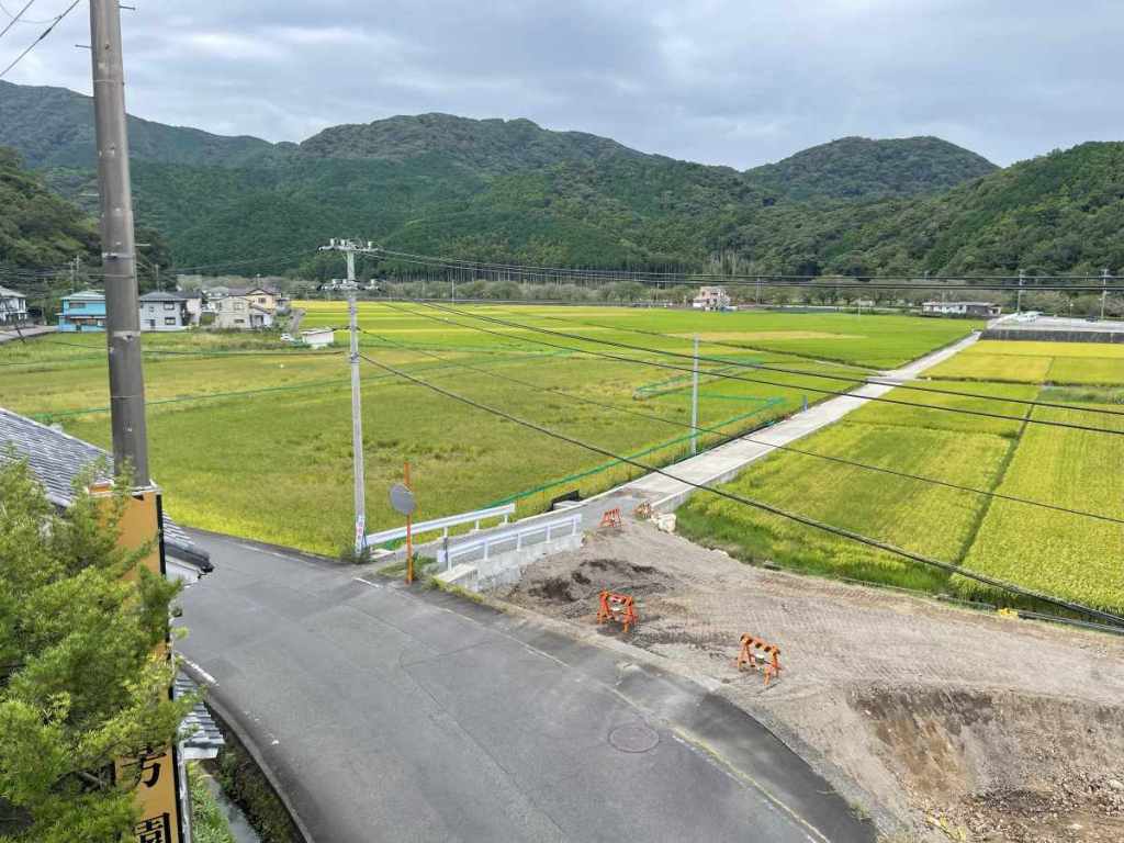 部屋の窓からはのどかな田園風景が広がります。奥の方には川と桜並木があり桜が開花すると見事な景色になります。