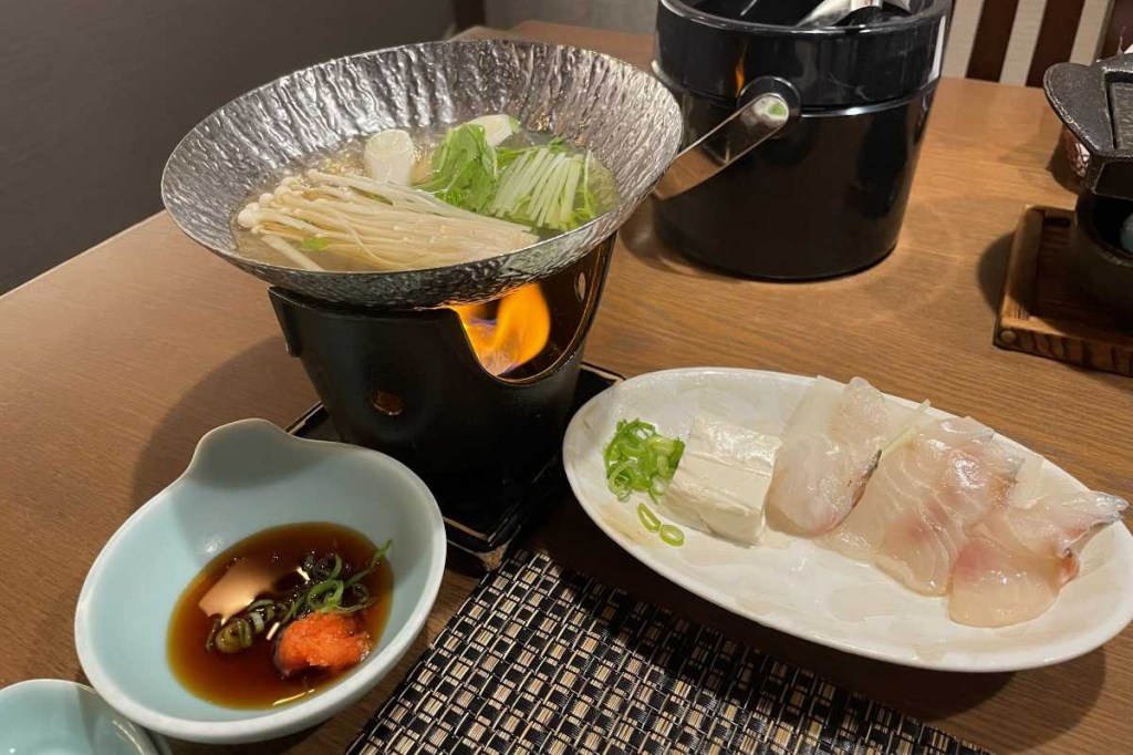 鯛のコラーゲンスープのしゃぶしゃぶは、鯛の切り身を入れてポン酢につけて食べると美味でした。