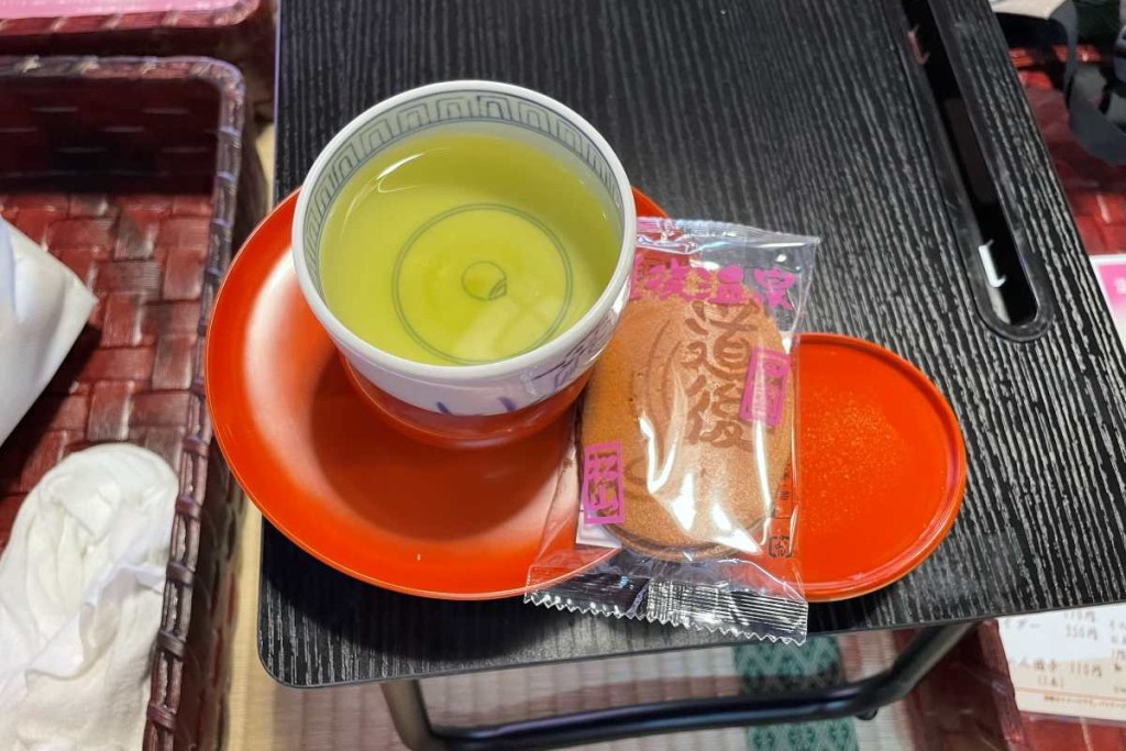 浴衣に着替えて入浴した後には、お茶とお菓子を出してくれます。