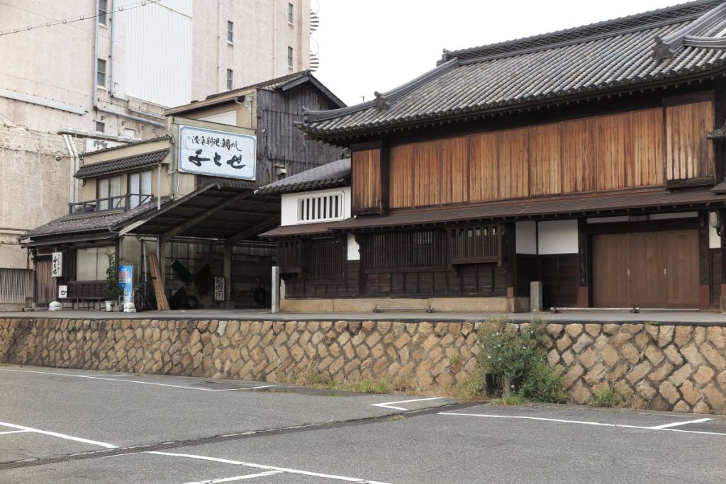 常夜燈に向かう道には古い町並みが続きます。