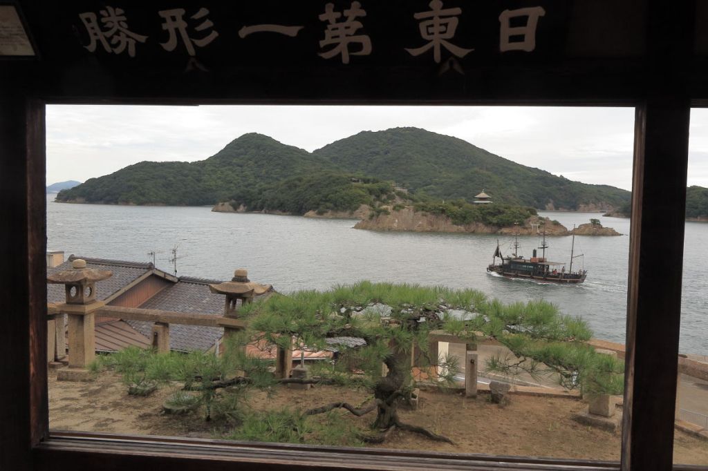1711年朝鮮通信使の李邦彦は、「日東第一形勝」と賞賛したそうです。確かに額縁の絵を見るようで素晴らしい景色です。手前の島は弁天島で、その奥は仙酔島です。