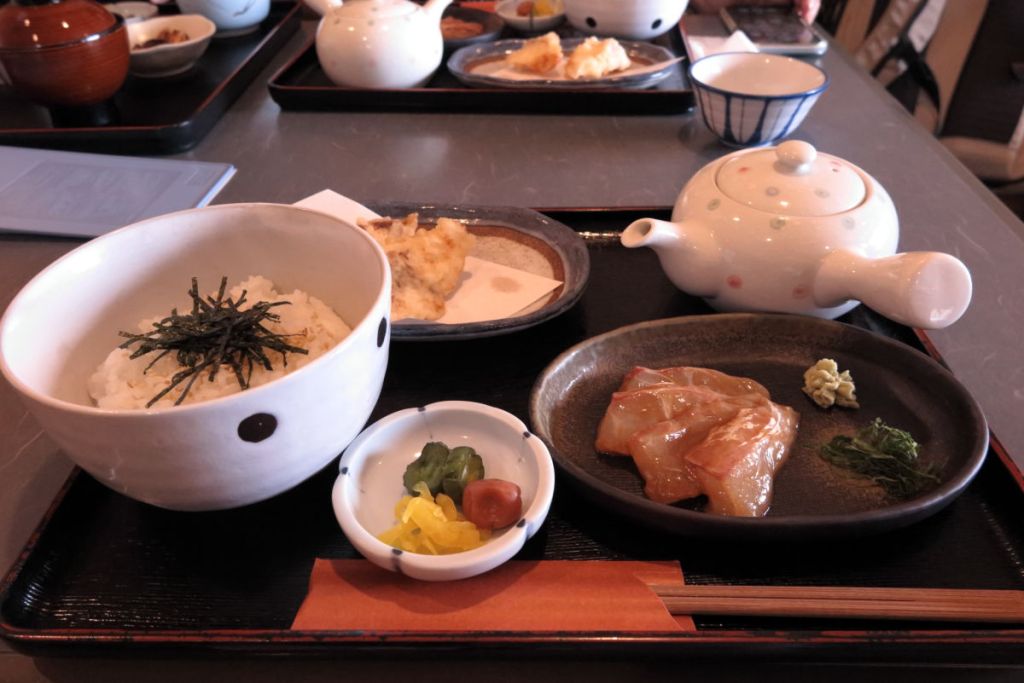 鯛釜飯と赤出汁の味噌汁もご当地らしい料理です。