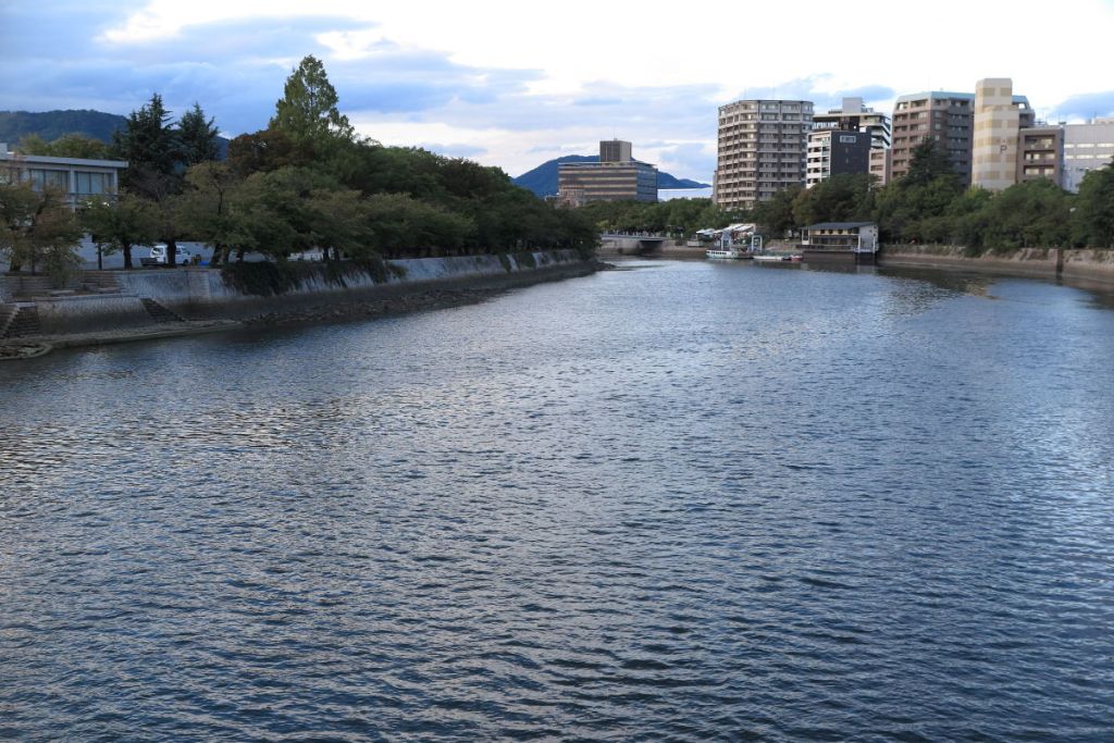 部屋に荷物を置いてから、ホテルの近くにある平和記念資料館に行きました。橋を渡るときに原爆ドームが見えました。