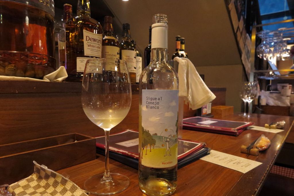 今まで飲んだことのないマカベオという品種のブドウを使ったオーガニックスペイン産白ワインを注文することにしました。果実感がありフレッシュで飲みやすいワインでした。